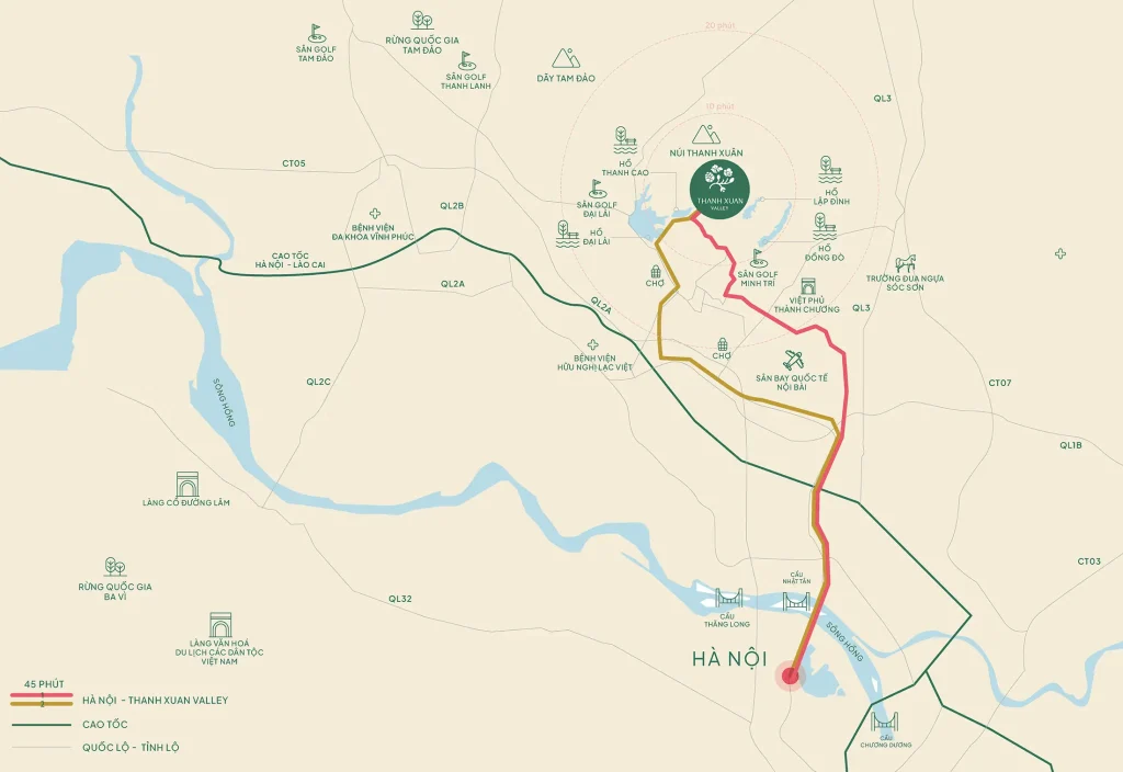 Với hạ tầng giao thông hiện đại và đang không ngừng mở rộng, vị trí Thanh Xuân Valley mang đến sự kết nối liền mạch giữa thiên nhiên và đô thị, mở ra tiềm năng lớn cho bất động sản nghỉ dưỡng ven đô Hà Nội.